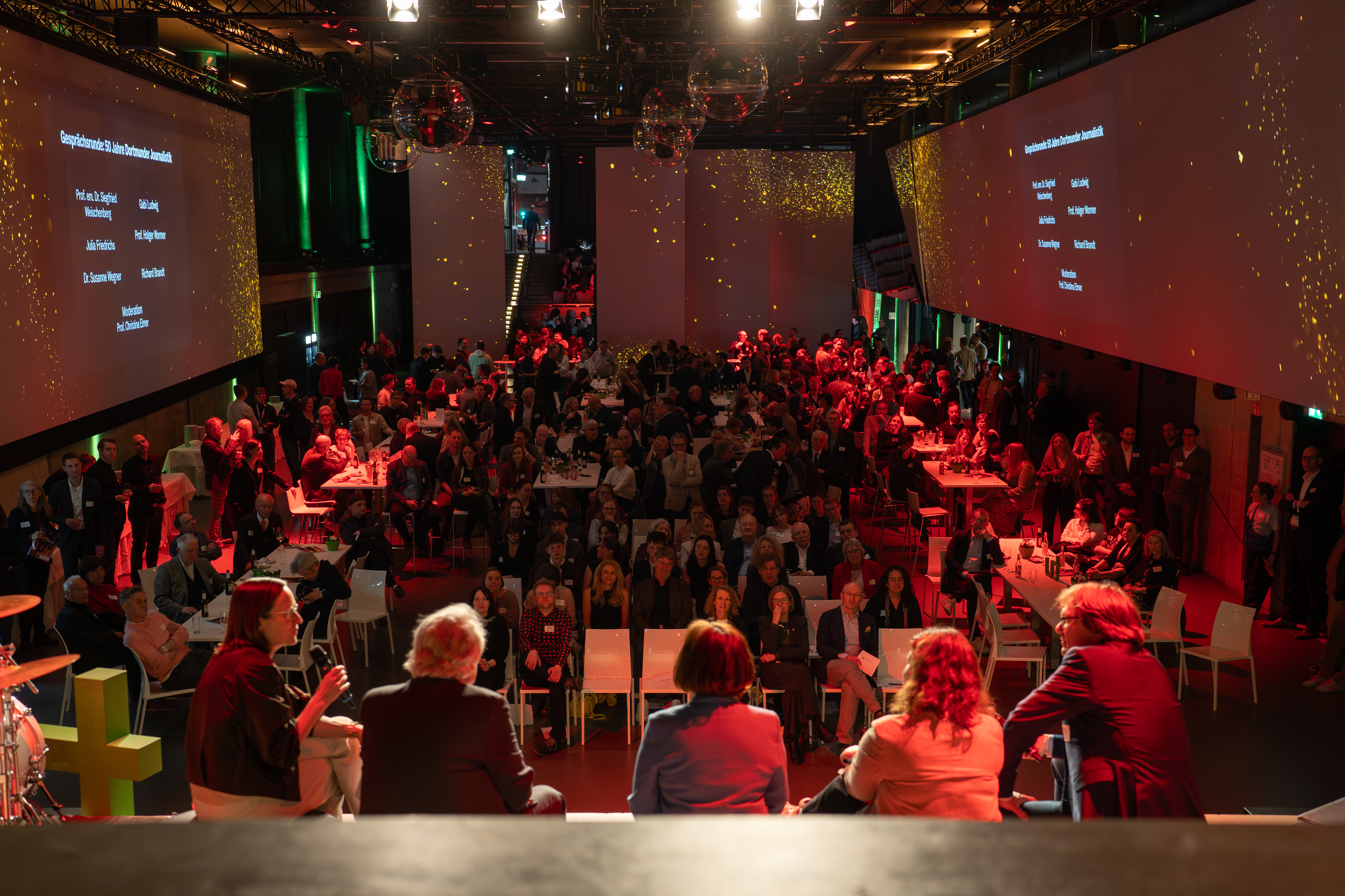 Unter dem Motto „Fakten feiern“ hat das Institut für Journalistik (IJ) der TU Dortmund am Freitag, den 20. März, ins Deutsche Fußballmuseum eingeladen. Rund 500 Gäste kamen zusammen, um 50 Jahre Journalistik in Dortmund zu feiern, darunter zahlreiche aktive und ehemalige Mitglieder sowie Vertreter:innen aus Politik, Praxis und Forschung. Dabei blickten sie nicht nur zurück auf die Anfänge und Entwicklungen des Instituts, sondern betonten angesichts aktueller globaler Umbrüche auch die herausragende Bedeutung des Journalismus für die Demokratie.