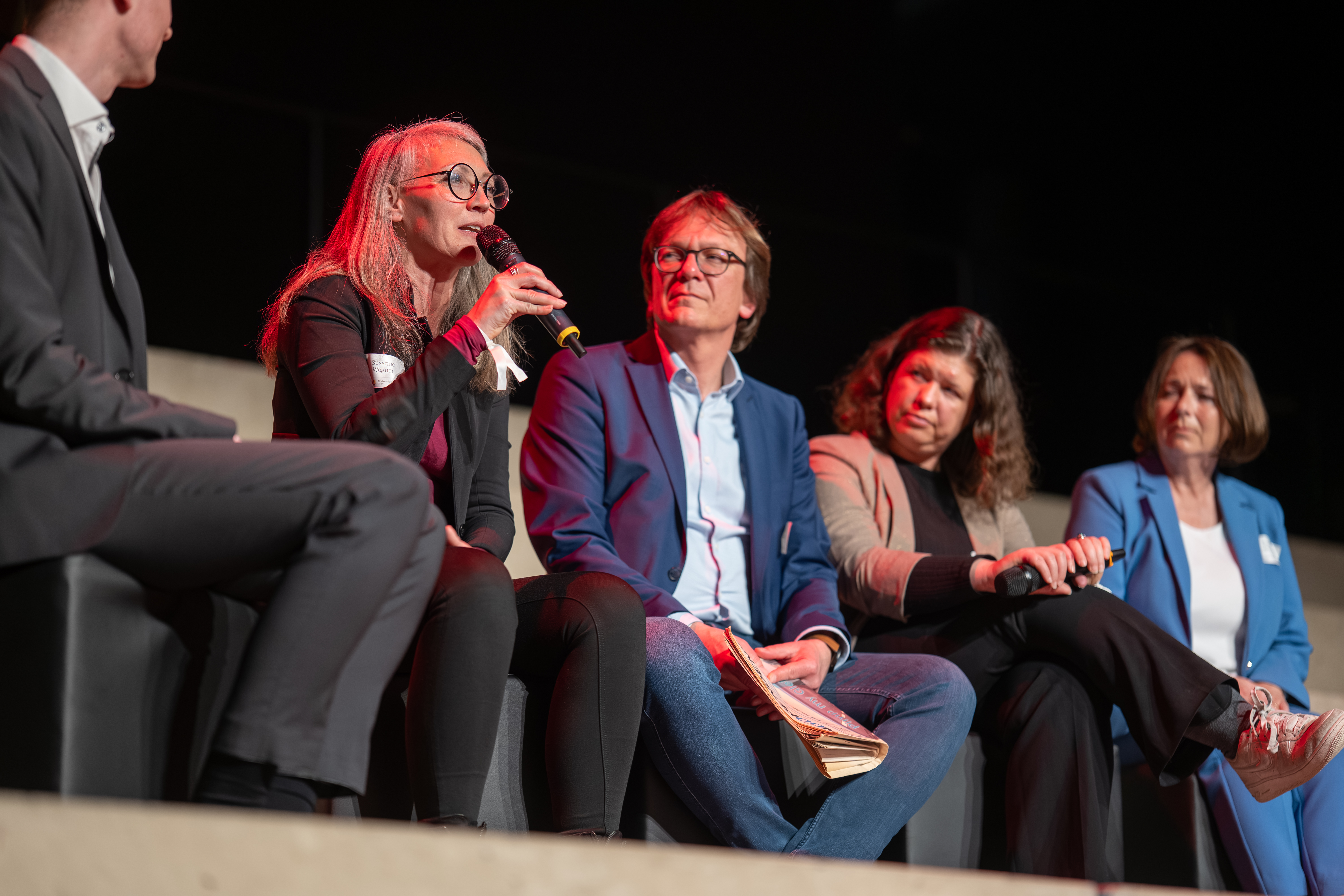 Wie wichtig gut ausgebildete Journalist:innen für die Gesellschaft sind, betonte Nathanael Liminski, Minister für Bundes- und Europaangelegenheiten, Internationales sowie Medien des Landes Nordrhein-Westfalen, in seinem Grußwort. Er wies darauf hin, dass sich die Medienwelt nicht zuletzt durch digitale Plattformen, auf denen jede Person jederzeit senden und empfangen könne, auf denen Zuspitzung belohnt und Polarisierung vorangetrieben werde, stark verändert habe. Hinzu komme die Gleichzeitigkeit von Krisen, die Menschen überfordere, weshalb sie nach Halt und Vereinfachung suchen. Ein freier Journalismus sei deshalb auch ein Dienst an der Demokratie, und beides bedinge sich gegenseitig, sagte der Minister, der den anwesenden IJ-Mitgliedern und Alumni für ihr gutes Handwerk und ihre demokratische Haltung dankte. Auch Bürgermeisterin Britta Gövert würdigte auf dem vermeintlich „größten Klassentreffen Dortmunds“ das Bemühen der etablierten und angehenden Journalist:innen, die Wirklichkeit einzuordnen und verständlich zu machen.