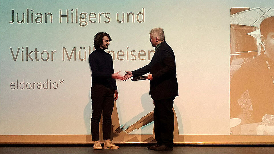 Tobias Lawatzki erhielt den Preis für die beste Moderation („Toaster“). Der Preis in dieser Kategorie geht damit im vierten Jahr in Folge an eldoradio*. Julian Hilgers und Viktor Mülleneisen bekamen einen Anerkennungspreis der Jury für ihre Doku „E-Sports – Nerd wäre zu einfach“.