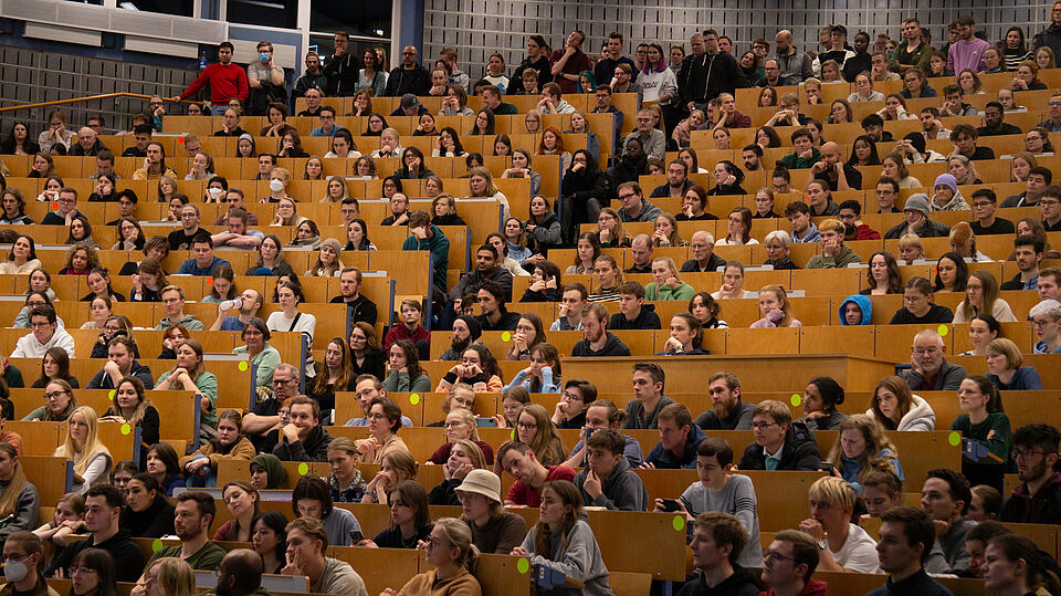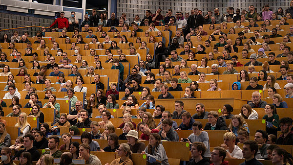 Nach dem Gespräch mit Carlotta Wagner und Prof. Holger Wormer stellte sich Mai Thi Nguyen-Kim auch den Fragen des Publikums. Warum müsse Chemie-Unterricht in der Schule immer so langweilig sein? „Das weiß ich auch nicht“, antwortet Mai Thi Nguyen-Kim und fügt grinsend hinzu, „Chemie ist doch so alltagsnah und anschaulich – nicht so wie Physik oder Mathe“. Was ihr liebster Fun Fact sei? „Wombats kacken viereckig, haben aber keinen viereckigen Anus.“ Wie die Themenfindung für ihre Fernsehsendung ablaufe? „Ich diskutiere die Themen mit meinem Redaktionsteam – ich finde es gut, wenn es viel Redebedarf über ein Thema gibt und uns sind Beiträge wichtig, die zur Versachlichug einer wissenschaftlichen Diskussion beitragen.“ Und was in den vergangenen Jahren ihr wichtigstes Learning gewesen sei? „Während der Corona-Pandemie habe ich ziemich viel gelernt“, sagt sie. So sei sie erst gegen eine Impfpflicht gewesen, dann aber ins Überlegen und zu dem Schluss gekommen, dass eine Impfpflicht „das kleinste Übel“ sei und verweist auf ihr maiLab-Video „Impflicht ist OK“. Vor der Pandemie sei sie „naiver“ gewesen und habe gedacht, dass man „mit Rationalität weiter kommt“.