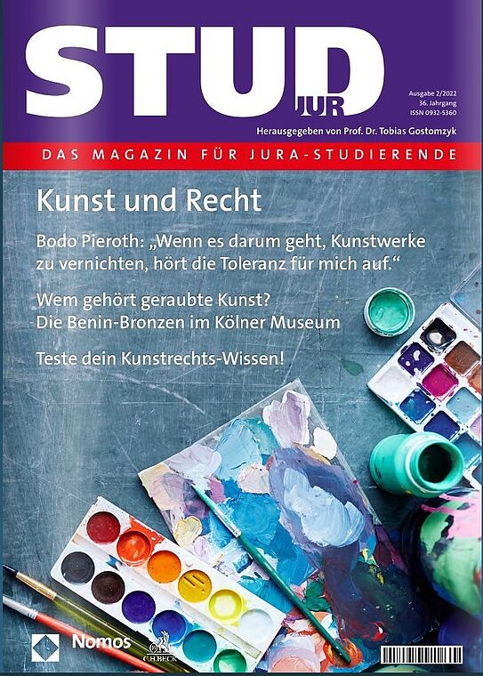 Entstanden sind Texte zum Thema „Kunst und Recht". In der Ausgabe zu finden sind etwa ein Interview zu Kunstfreiheit und Cancel Culture mit dem renommierten Rechtswissenschaftlicher Prof. Dr. Bodo Pieroth, ein Feature zur Restitution von Benin-Bronzen durch ein Kölner Museum und ein Quiz zum Kunstrecht.