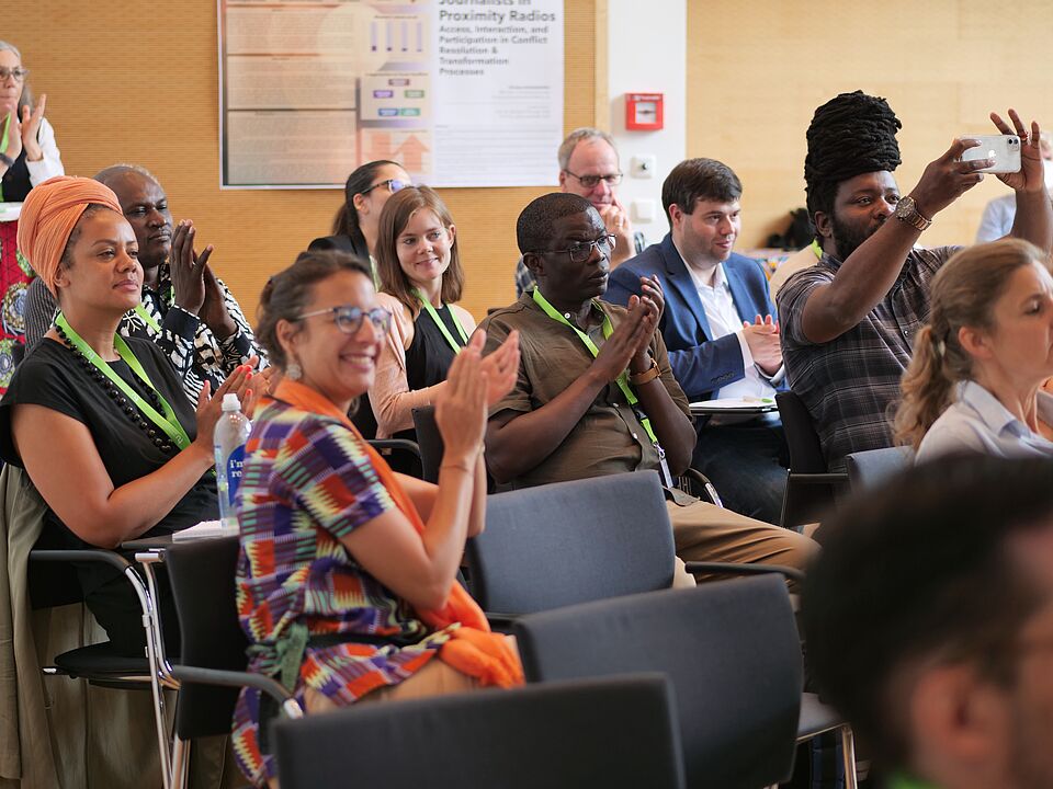 Anschließend fand ein von Dr. Ines Drefs und Mira Keßler moderierter Expertenaustausch mit Praktiker:innen aus der Medienentwicklungszusammenarbeit im Libanon, in Burkina Faso, Nepal, Uganda und Afghanistan statt. In Kleingruppen befassten sich die Teilnehmenden mit Fragen des gegenseitigen Vertrauens, der Partizipation und der lokalen Eigenverantwortung.