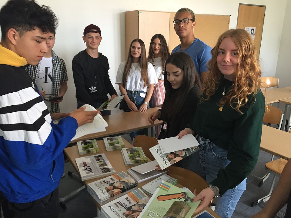 Wie lange dauert es bis zum Bachelor-Abschluss? Wie bekomme ich einen Studienplatz? Und was verdienen eigentlich Journalisten? Diese und andere Fragen stellten die Schülerinnen und Schüler der Goethe-Schule im Rahmen der Gruppenberatung. "Es ist toll zu sehen, wie viele angehende Abiturienten sich für den Journalismus begeistern lassen", zog IJ-Mitarbeiterin Stefanie Opitz ein positives Fazit. "Uns ist es wichtig, möglichst frühzeitig in den Schulen für unser Institut, unsere Studiengänge und den Qualitätsjournalismus, für den wir ausbilden, zu werben."