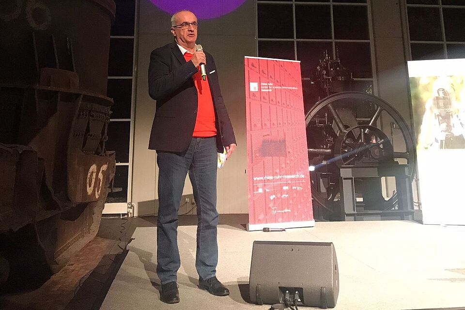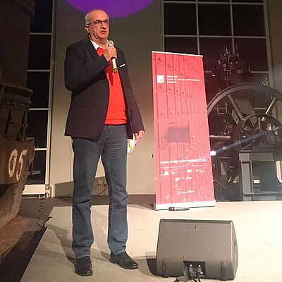 Prof. Dr. Manfred Bayer, Rektor der TU Dortmund, hielt - außer Konkurrenz - ein humorvolles Schlusswort über das Grußwort und bewies echte Slammer-Qualitäten.