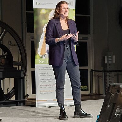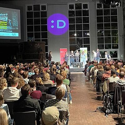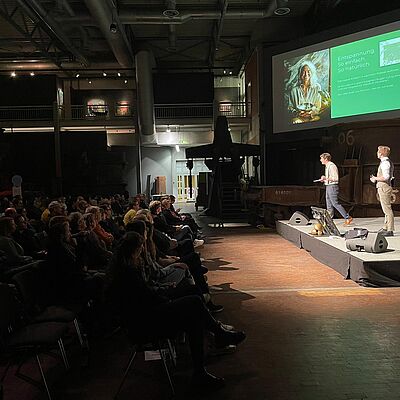 Mit dabei waren auch die beiden Wissenschaftsjournalismus-Absolventinnen Marie Eickhoff und Luisa Pfeiffenschneider vom Behind Science Podcast, die zu Vielfalt in der Wissenschaft slammten und drei Erfinderinnen vorstellten, die in der Öffentlichkeit weniger bekannt sind. Lisa Budzinski, deutsche Meisterin im Science Slam 2022, präsentierte ihr "Horoskot", mit dem aus Darmbakterien die Zukunft gelesen werden kann. Der Historiker Christian Krumm fragte, ob Wissenschaft zu komplex für die Öffentlichkeit sei.